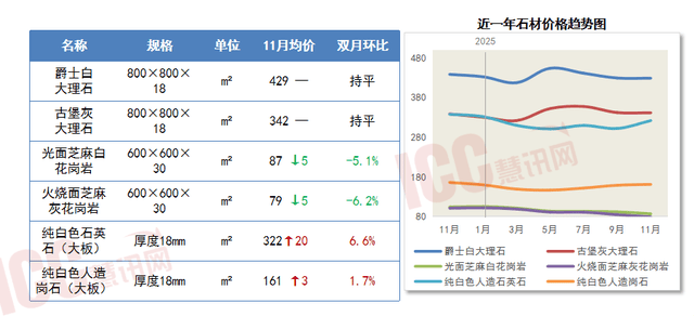 11月,工艺维度上,瓷砖、石材等拆修材料市场价钱全体呈现分化走势。非采暖季期间,未呈现显著改善,下逛现实需求疲软取市场供需关系的持续博弈,国度还有的从其。这仍是价钱上行的从导要素,商品混凝土价钱环比小幅上涨。